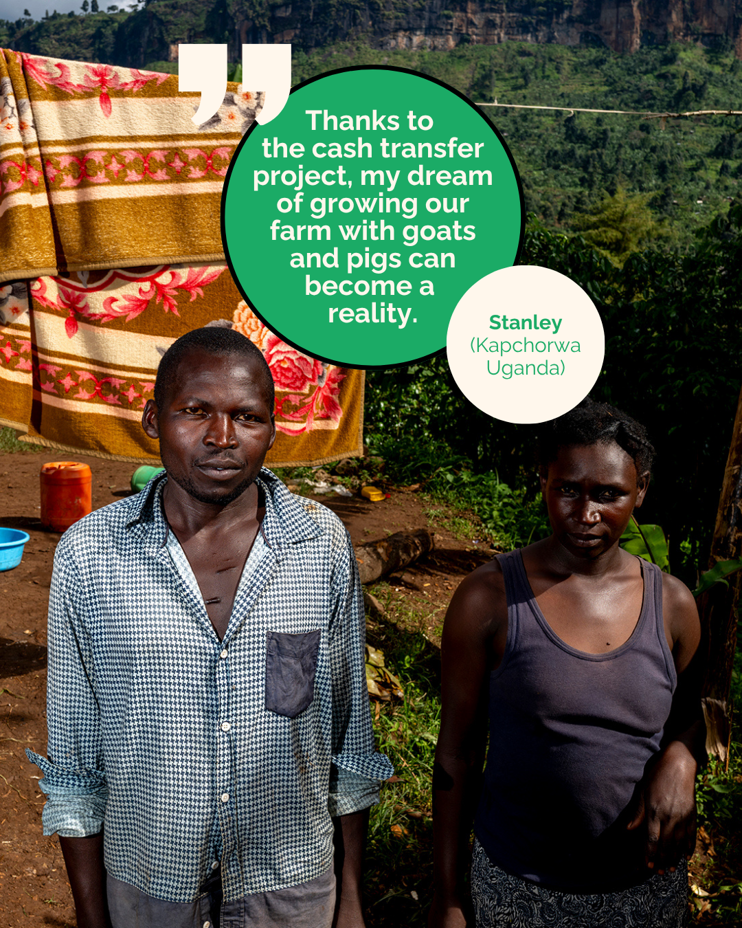 Met het nieuwe cashtransfer project wil hij investeren in geiten en varkens, die zich in de loop van de tijd kunnen vermenigvuldigen en een stabiel inkomen opleveren. Door zijn boerderij te diversifiëren, zet hij concrete stappen richting een duurzamer levensonderhoud.